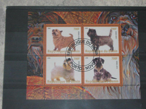 Blokje postzegels met rechtsboven een knappe Cairn. Kadootje van Gerda. Gerda van de mooie foto’s en youtube filmpjes |