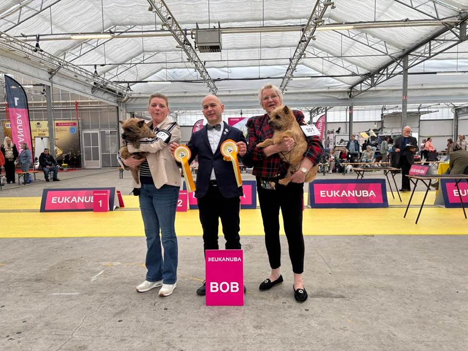 Hier keurde de Italiaanse keurmeester Marco Marabotti de Cairn Terriers. LIO (Cobby Body Fascination) presenteerde zich goed ondanks alle drukte rond de ring en werd Beste Reu met CAC en CACIB. Zijn 4e! En dat met 16 maanden…. Hij werd BOS en hoefde dus niet naar de Erering.